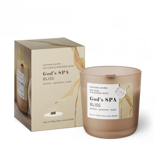 • ekologický sójový vosk, romanické jemné syčení s dřevěným knotem