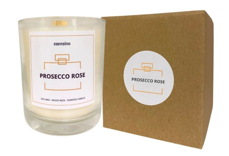 Oblíbená sójová svíčka Prosecco s dřevěným knotem. Obsahuje ekologický sójový vosk a doba hoření je výrazně delší než u parafínové svíčky.