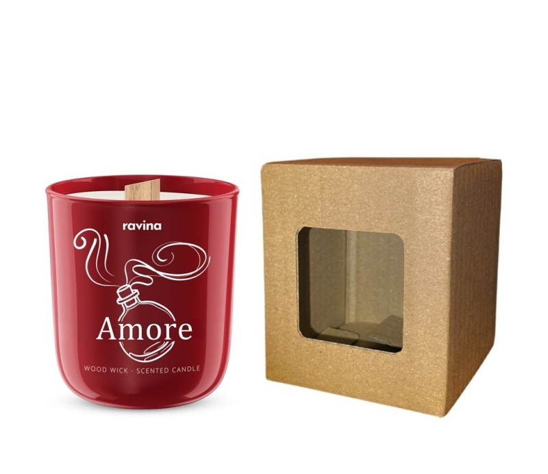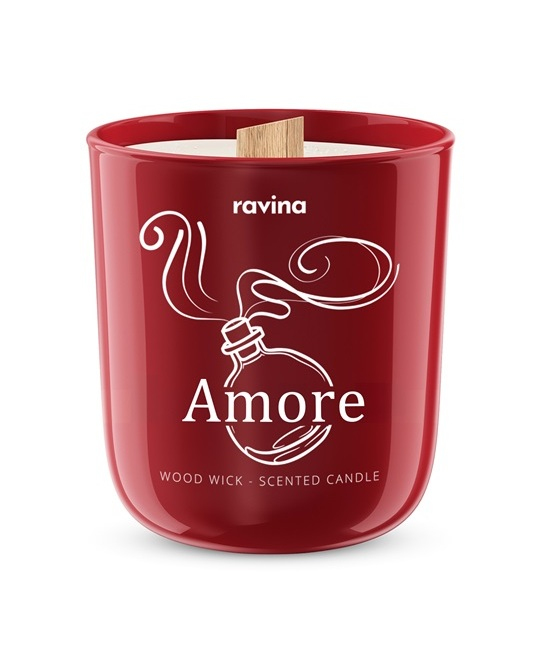 Oblíbená sójová svíčka Amore s dřevěným knotem.