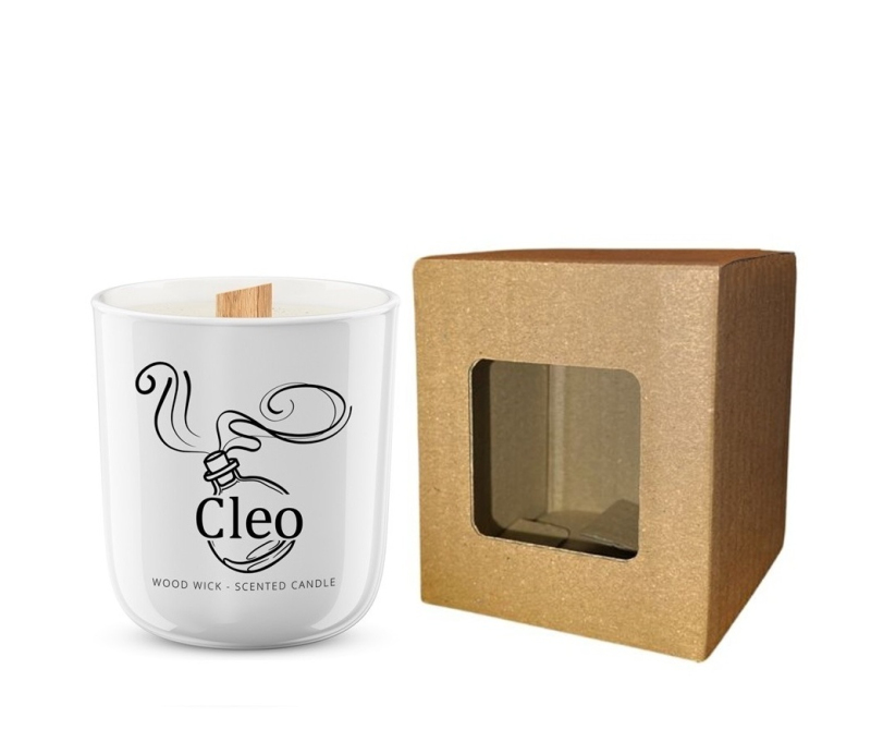 Oblíbená sójová svíčka Cleo s dřevěným knotem. Obsahuje ekologický sójový vosk a doba hoření je výrazně delší než u parafínové svíčky. Jemné praskání dřevěného knotu navozuje relaxační romantickou atmosféru.
