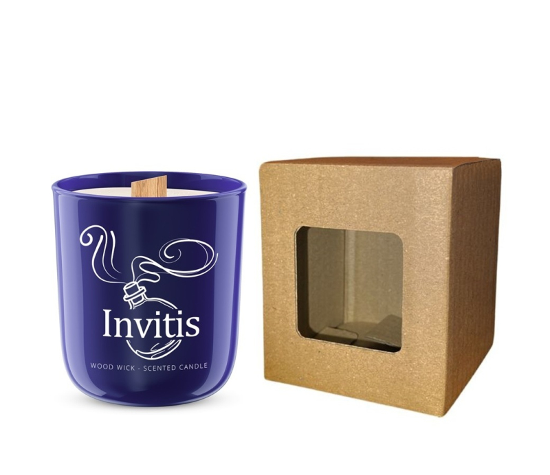 Oblíbená sójová svíčka Invitis s dřevěným knotem. Obsahuje ekologický sójový vosk a doba hoření je výrazně delší než u parafínové svíčky. Jemné praskání dřevěného knotu navozuje relaxační romantickou atmosféru.